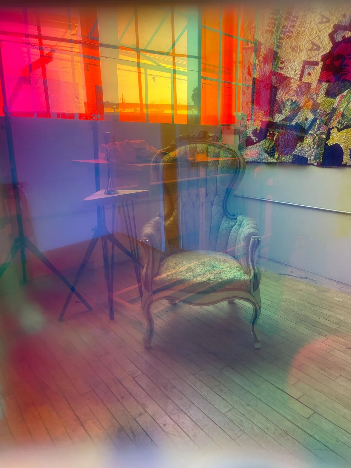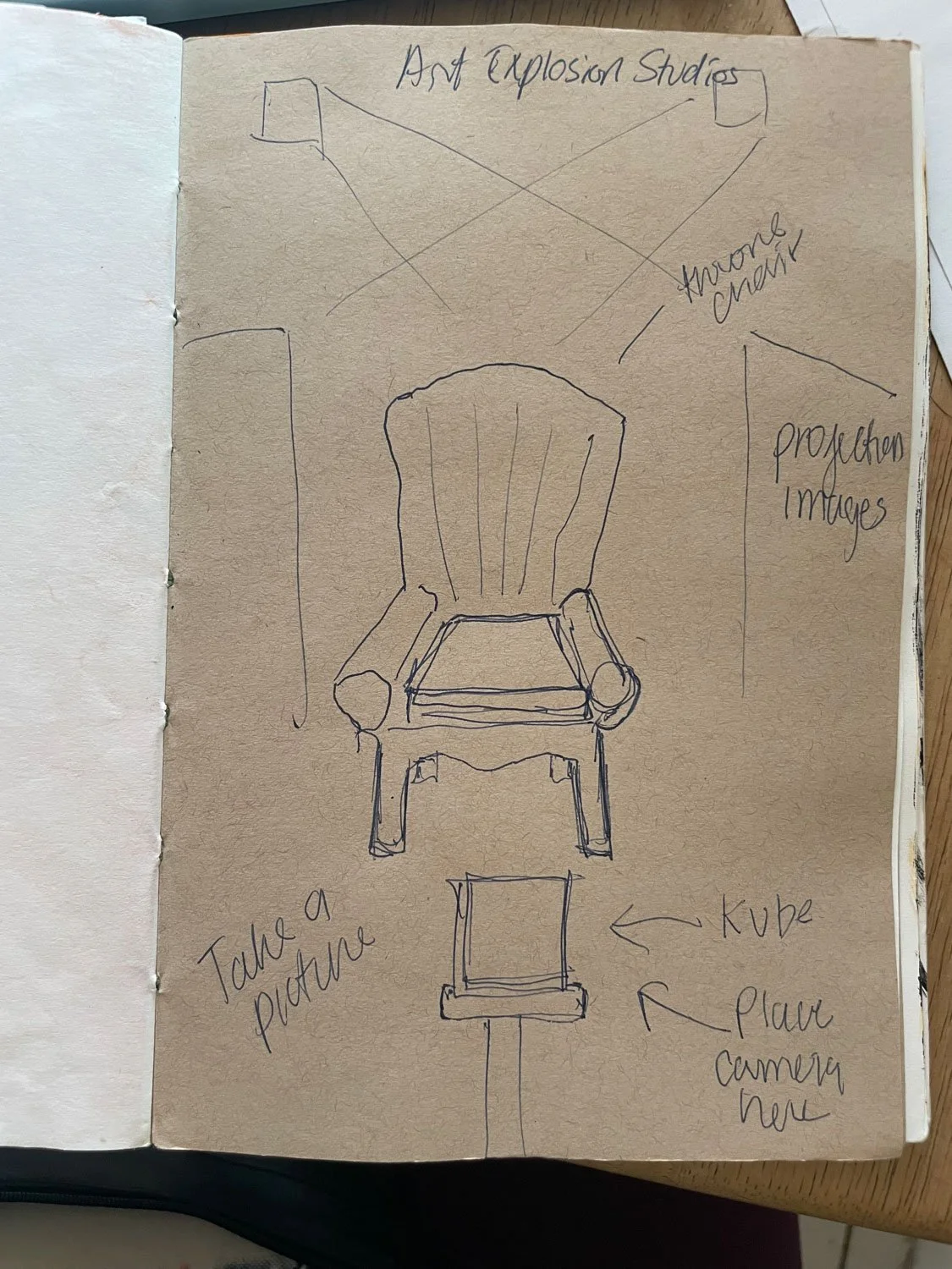 Still not yet recovered from a traumatic injury, and with only four days until the event, I managed to [solicit my friend’s to help to] set up this photo experience idea I had for open studios, to share my art and sell some Kaleidocubes.